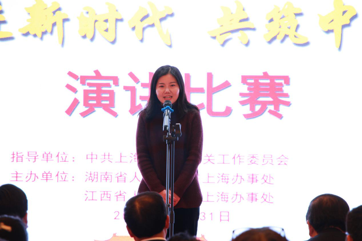 2020年是全面建成小康社会和“十三五”规划收官之年,也是承上启下的关键一年。为全面贯彻习近平新时代中国特色社会主义思想,落实党的十九大及十九届二中、三中、四中全会精神,加强湖南、江西两地及与上海的交流合作,2019年12月31日下午,湖南沪办、江西沪办在上海市市级机关工委的指导下,联合举办“奋进新时代 共筑中国梦”演讲比赛,以激发干部职工不忘初心、牢记使命的奉献和担当,在讴歌祖国、讴歌党、讴歌新时代,讴歌上海与家乡建设中迎接新年到来。
