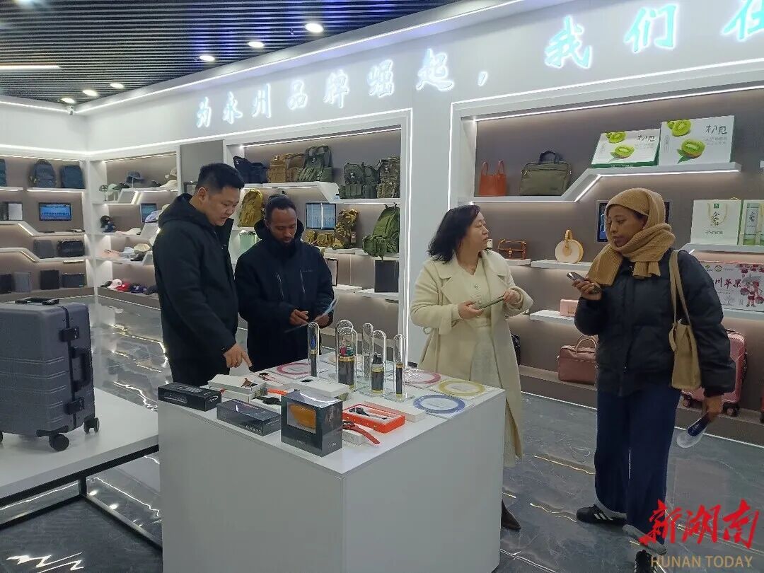 非洲埃塞俄比亚采购商走进永州陆港跨境电商中心考察。图源:新湖南客户端